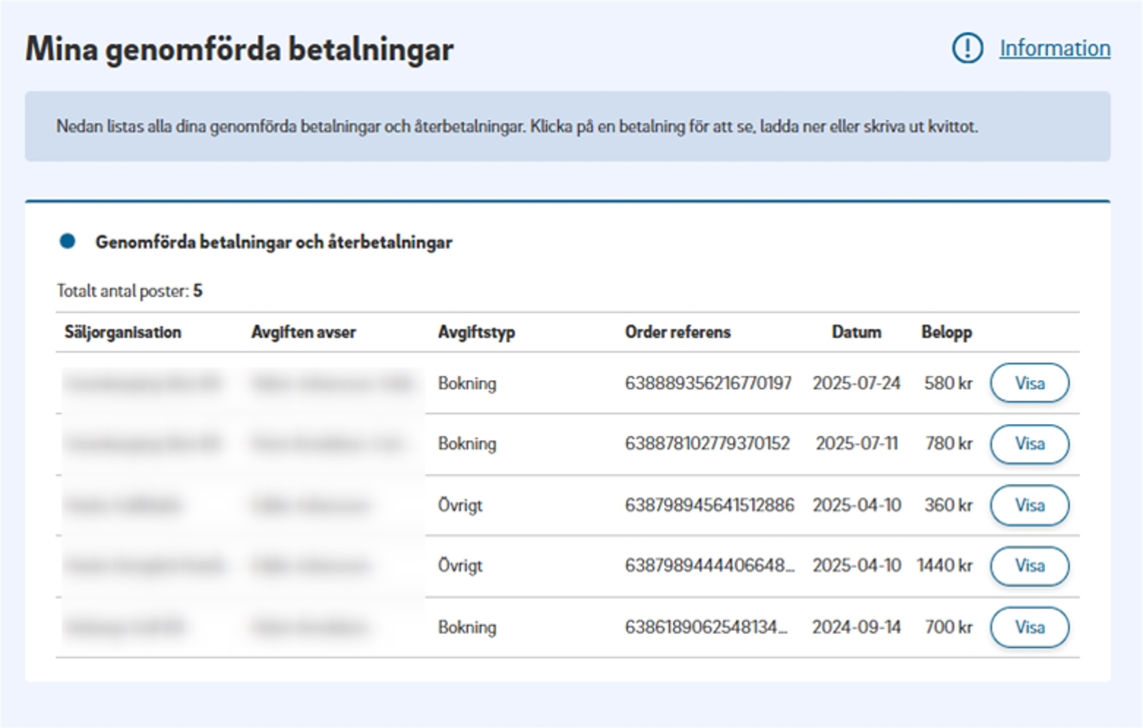 • Gå till Meny > Mina inställningar > Genomförda betalningar