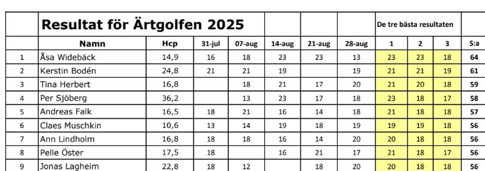 Ärtgolfen 2025 är nu i hamn. Tur med vädret har vi haft. Rekord i antalet deltagare har det också blivit. Ett stort tack till Nika och Jens för att ni ordnat det fantastiskt bra med ärtmeny och trivseln i restaurangen.