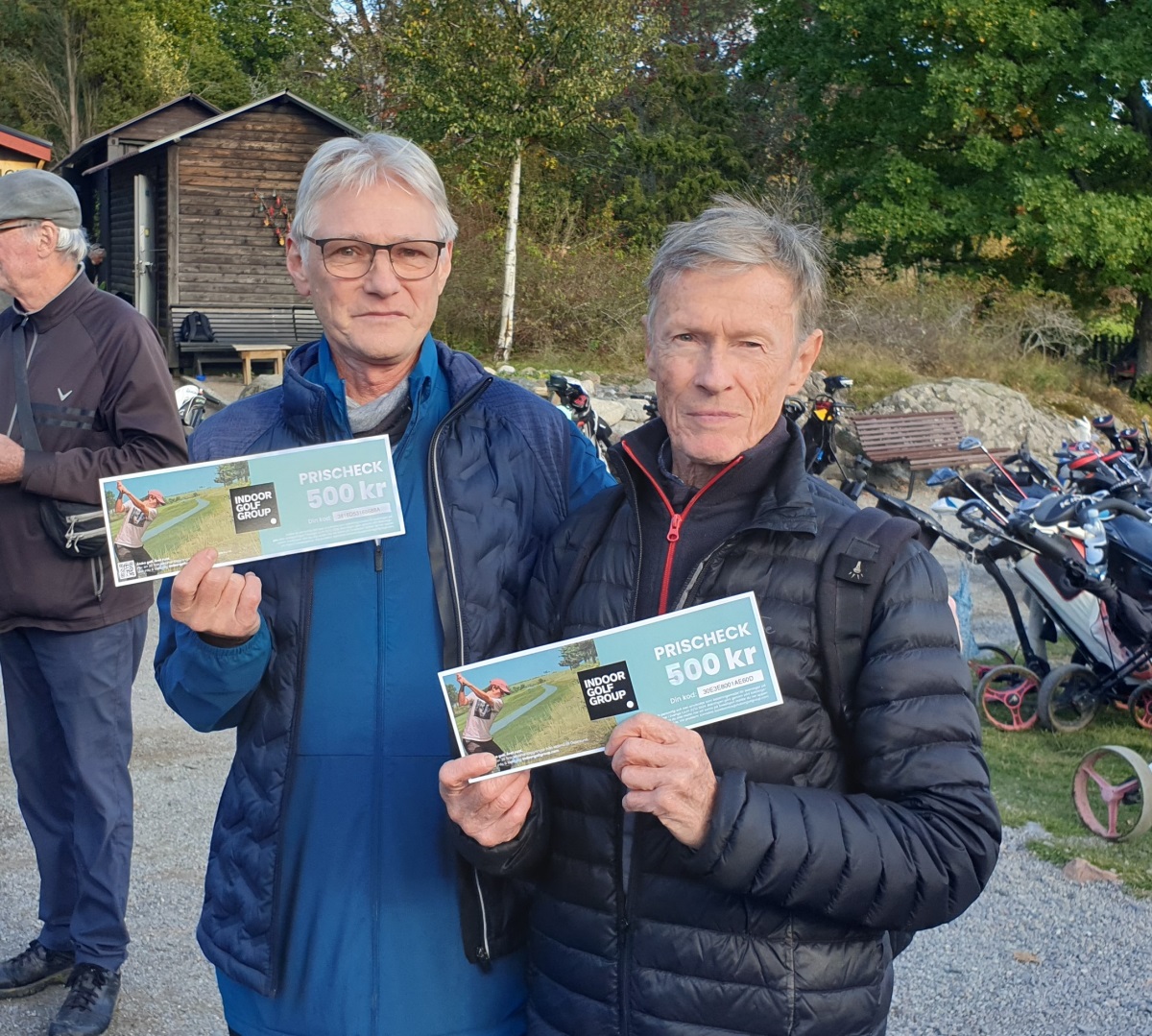 Vinnarna av utlottningspriserna, 2 st presentkort på Nacka Indoor à 500 kr, tillföll Johny Söör och Göran Blomé