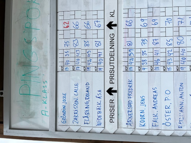 Då Jocke tyvärr inte kunde vara kvar hela dagen (jobbet) så blev det inget särspel om vandringspokalen. Men den gick självklart till Johny, segrare av B-klassen med sitt fina resultat på 64 slag netto. Grattis Johny! Och riktigt bra spelat både Jocke och Johny,